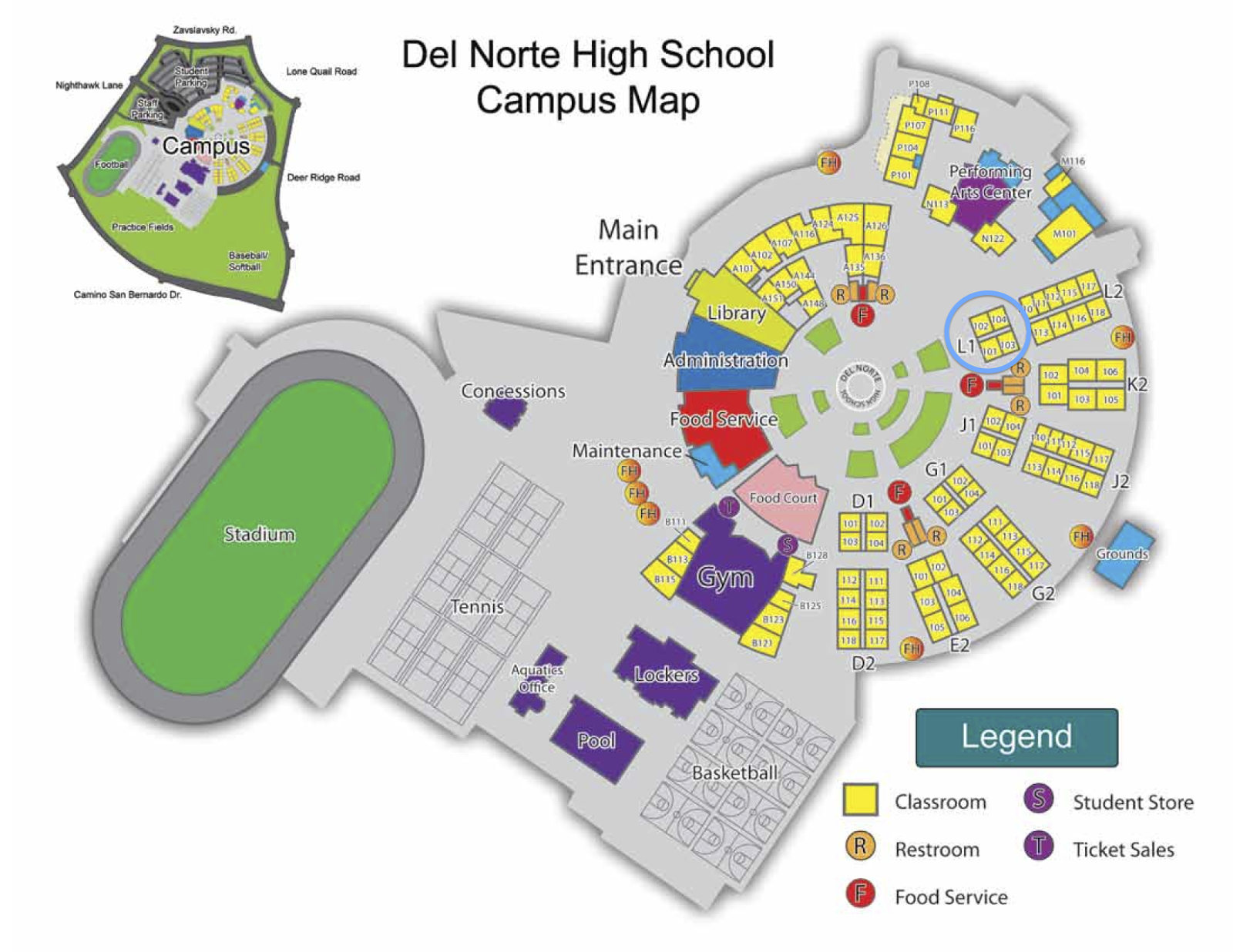 Del Norte High School Map Del Norte High School (San Diego) Wikipedia: Del Norte Highโs Athletics Hall of Fame was launched two years ago, and this week the school added two new inductees. Paul Sackett had many roles at the school. He was a physical education coach . POWAY, Calif. โ A Del Norte High School student and her parent are suing the Poway Unified School District over allegations of harassment and intimidation from the superintendent. The lawsuit .